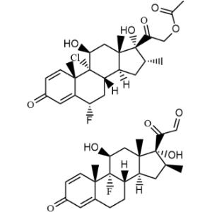2-((6S,8S,9R,10S,11S,13S,14S,16R,17R)-9-氯-6-氟-11,17-二羟基-10,13,16-三甲基-3-氧代-6,7,8,9,10,11,12,13,14,15,16,17-十二氢-3H-环戊[a]菲-17-基)-2-氧代乙基乙酸酯化合物2-((8S,9R,10S,11S,13S,14S,16S,17R)-9-氟-11,17-二羟基-10,13,16-三甲基-3-氧代-6,7,8,9,10,11,12,13,14,15,16,17-十二氢-3H-环戊[a]菲-17-基)-2-氧代乙醛 (1:1)(氟替卡松杂质)